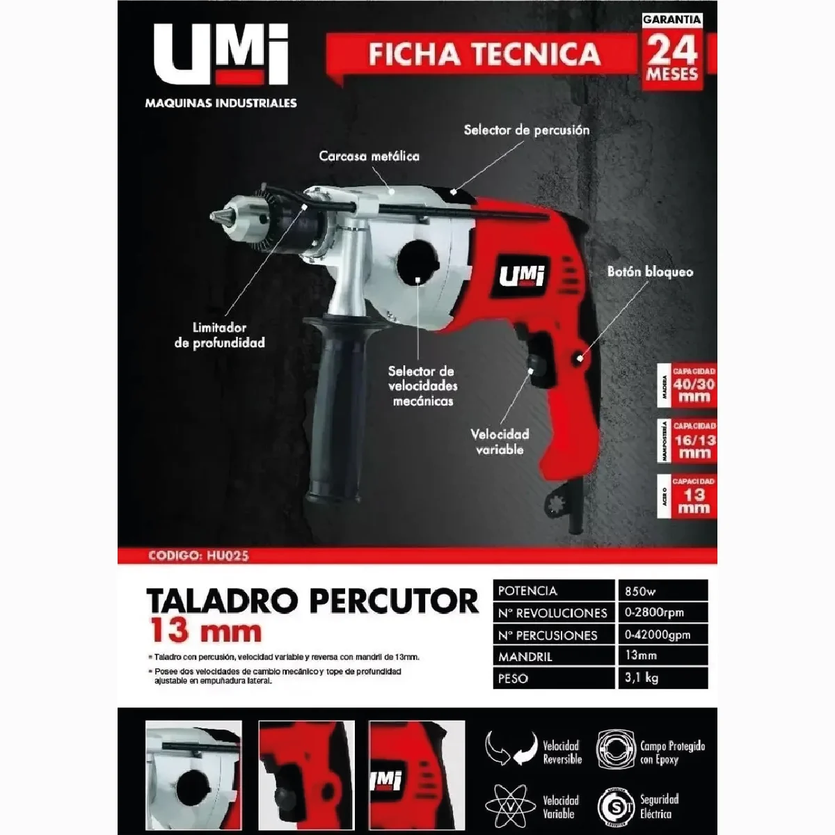 Taladro Percutor 13mm 850w UMI – HU025